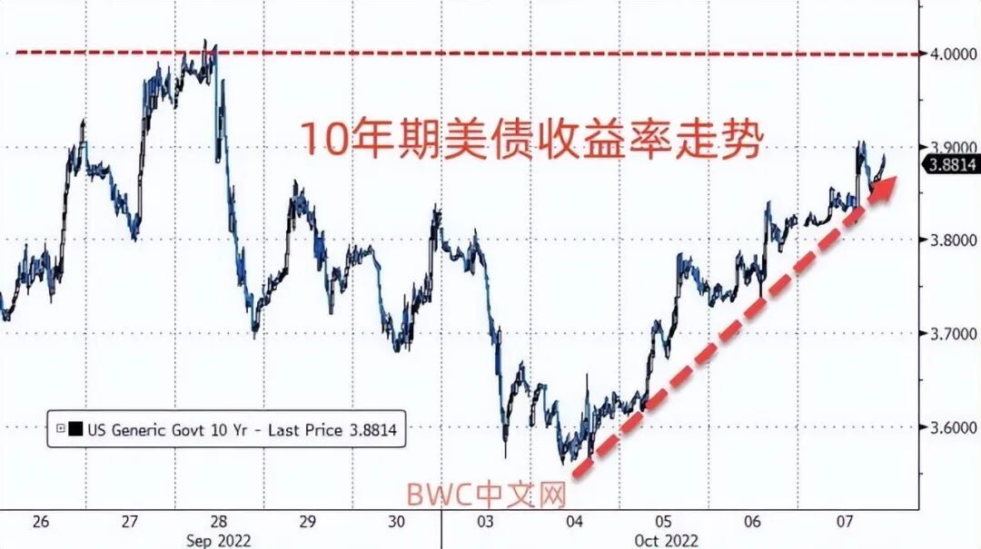 10月8日,美国纳指暴跌3.8%,10年期美债收益率飙升至3.90%,且该收益率已经连续10周收高,为1970年代以来最长连涨走势,体现经济晴雨表的关键两年-10年期美债收益率利差扩大至-43.264个基点,这表明美联储将很快面临第一次真正的沃尔克考验,美国经济将继续步入全面衰退。