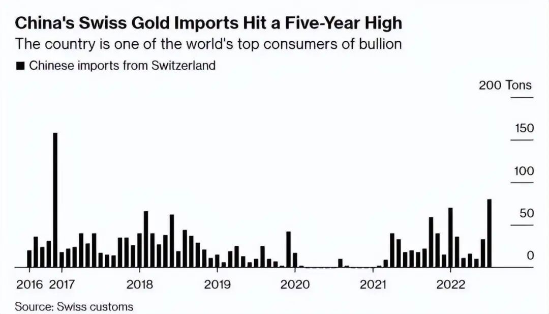 紧接着,据世界黄金协会9月28日公布的数据,7月份,瑞士对中国的黄金出口按月增长147%,且为2016年以来最多。