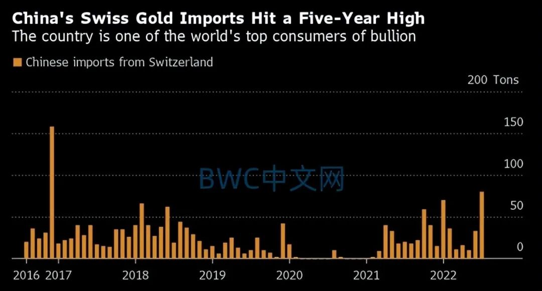 这就进一步佐证了,之前有分析师称,数千吨黄金或已运抵中国市场。如下图是中国买家从瑞士采购的黄金数量,似乎进一步说明了问题。