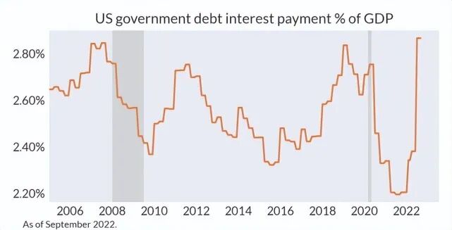 数据显示,目前美国联邦债务已经突破31万亿美元,当前的利率为4%,随着美联储政策利率将在明年6月飙升至5.1%,那么美国每年仅支付这些债务利息成本就高达1.5万亿美元,这将是2022财年联邦税收总额的29%。