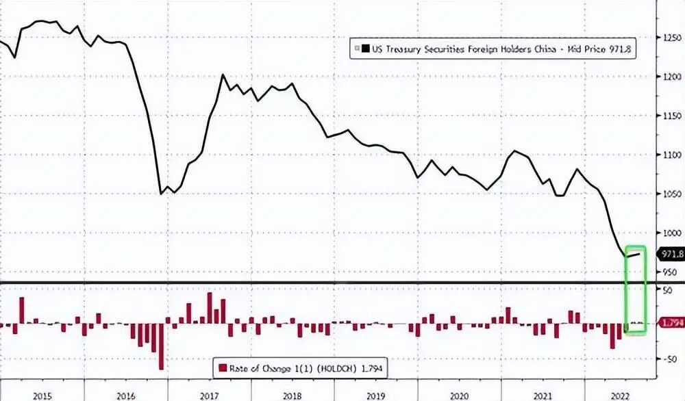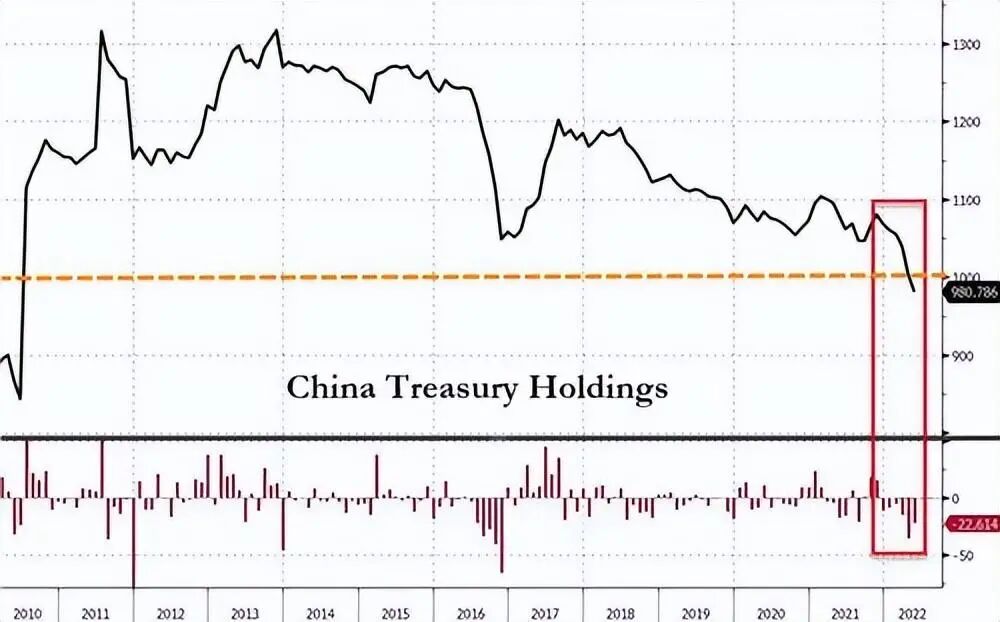 更加值得注意的是,BWC中文网查询美国财政部历史数据注意到,中国在2013年11月当时持有美国国债总额达1.3167万亿美元,再对比最新数据,可以看出,9年间,中国已经累计抛售了规模高达3449亿美元的美国国债。累计抛售比例超过26%。