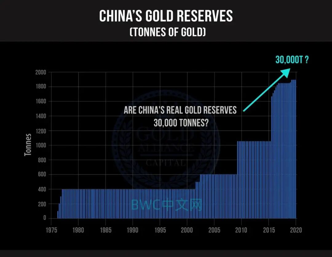 对此,Goldalliance表示,中国实际或拥有更多黄金,远比想象的要多,比如,国际黄金分析第一人阿拉斯代尔麦克劳德认为,中国在1982到2020年间囤积了2.5万吨黄金,而目前很有可能超过3万吨。