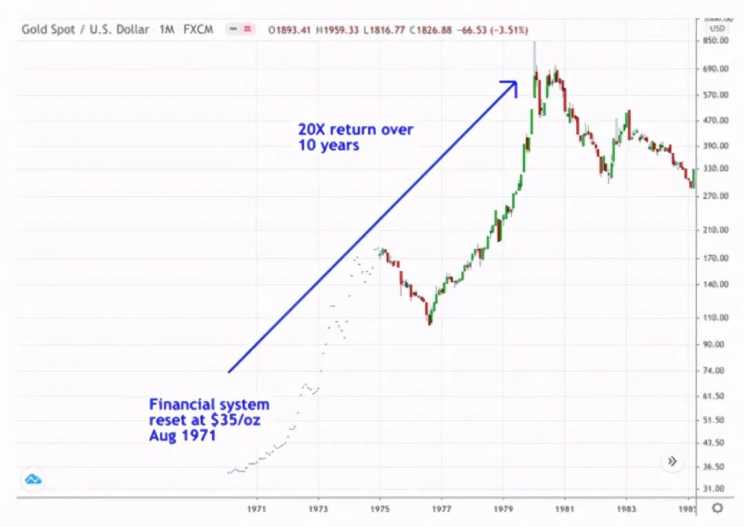 我们可以肯定的是,经过一个世纪以来美联储不断增加干预和通货膨胀,包括五十年来根本没有黄金对美元的支持。自从1971年尼克松单方面废布雷顿森林体系金本位后,美元似乎取代了黄金的这一地位。然而,人们不能忽略的是,50年过去了,黄金兑换美元不断升值。