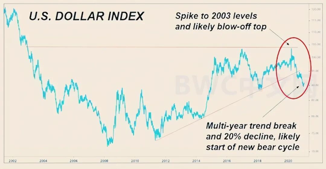 BWC中文网国际财经团队据美联储和美国财政部网站公布的最新数据统计到,自新冠病毒蔓延以来,再加上美国宣布将推出的1.9万亿美元的新刺激方案,美国财政部和美联储已经在过去的41周内放水印钞了达20万亿美元的基础货币流动性和各类经济刺激方案。所谓物以稀为贵,货币价值也是如此,这些膨胀美元无形在消耗美元的“含金量”。如下图,美元似乎已经恢复了其长期下降趋势。