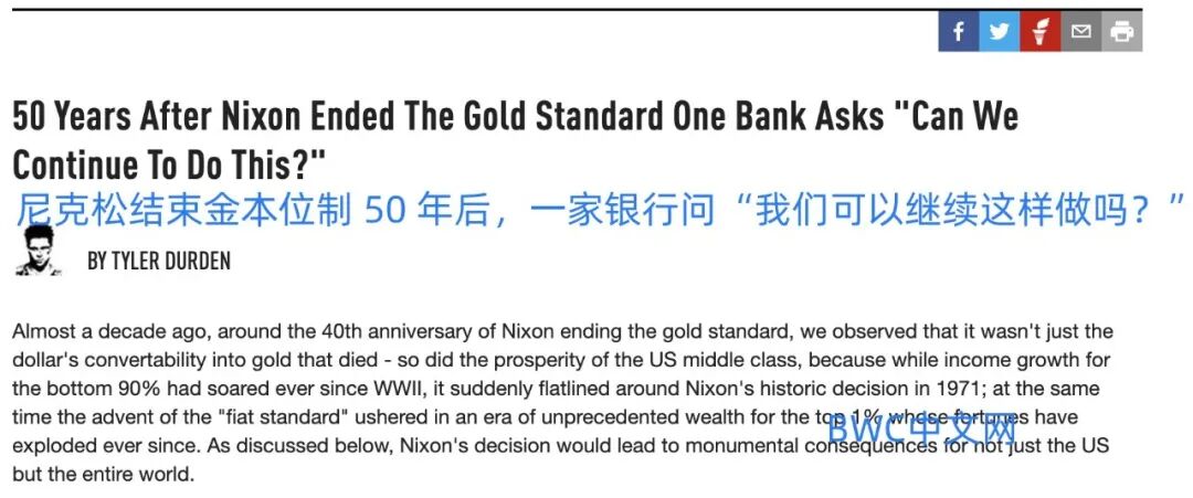 虽然,美国财政部和美联储都认为他们能控制美元的价值,但人类的货币史告诉我们,他们控制不了,美联储更是无法印刷黄金,因为,现在美国经济的宏观环境是货币化债务及货币贬值。比如,一家美国银行建议美国重新回到金本位制就是最好的例证。