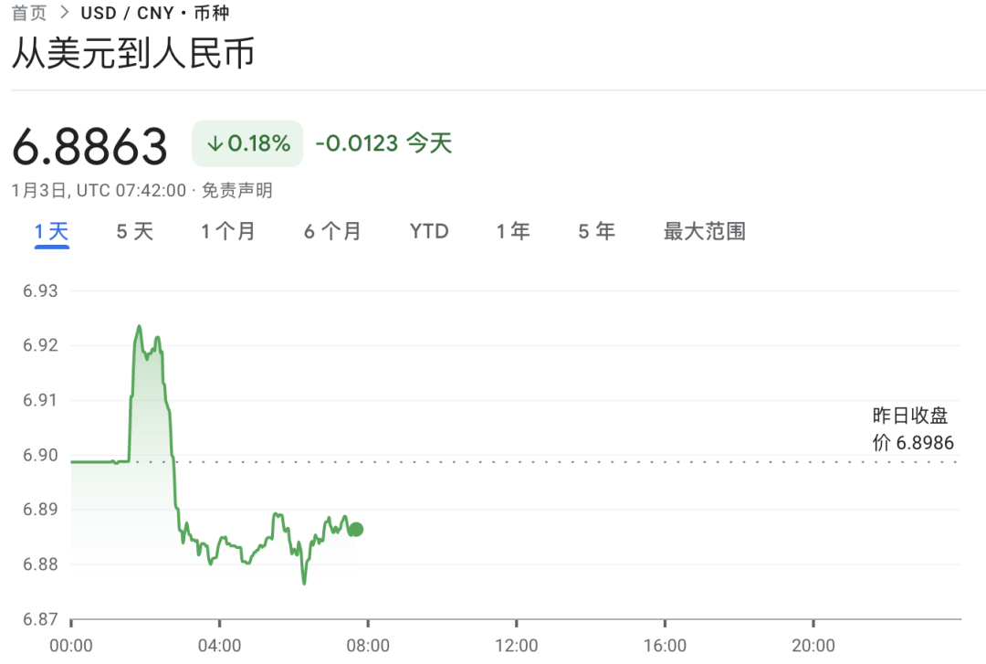 1月3日,人民币持续反击,在上一个交易日上涨的基础上,2023年迎来强势开局,截至发稿,在岸和离岸人民币较前一交易日分别上涨180点和370点,离岸人民币兑美元触及6.87元关口,涨0.62%;在岸人民币更是陆续收复多个关口,盘中最高升至6.8785,日图涨0.25%,目前报6.8863元。