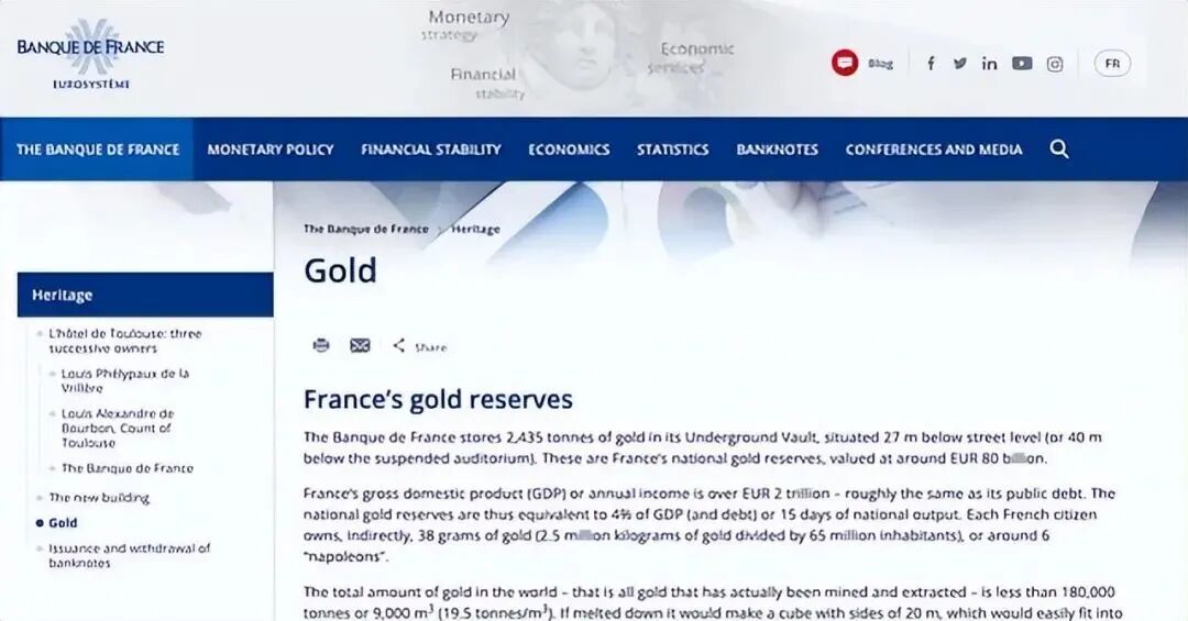 据法国央行11月23日在其网站更新披露文件称(请参考上图),法国已经从美国等国外金库中遣返回了所有货币黄金,共计221吨,这些黄金目前都存放在巴黎金库中,这也是我们能查询到目前全球央行从国外遣返黄金回国的最新报道。