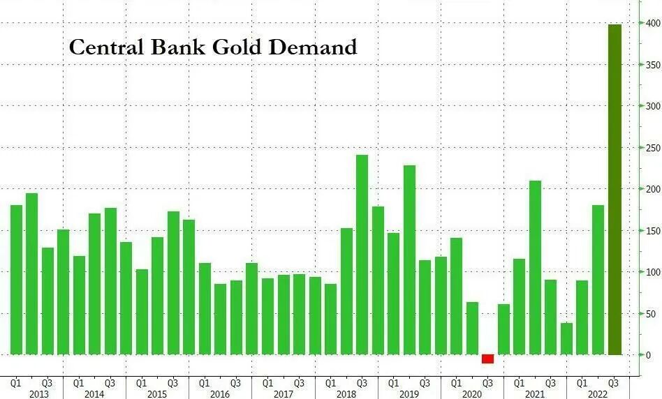 事实上,全球央行对美元的不信任趋势早已开始,因为,世界黄金协会在1月5日最新公布的最新报告显示,展望2023年,已将黄金定义为宝贵的战略性资产,正在重新恢复出金融货币的属性,自2010年以来,全球央行就一直是黄金储备的净买家,以扩大外储,作为多元化和安全的手段。