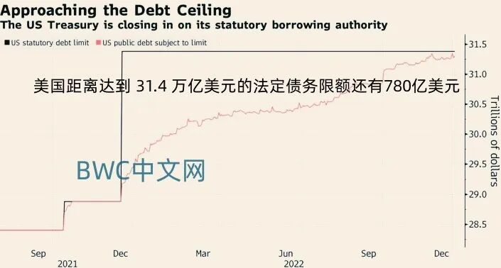 截至1月7日的最新消息表明,据美国官方统计,美国距离达到 31.4 万亿美元的法定债务限额还有780亿美元。如果美国借贷能力耗尽,紧随其后到期的债务可能无法按时偿还。