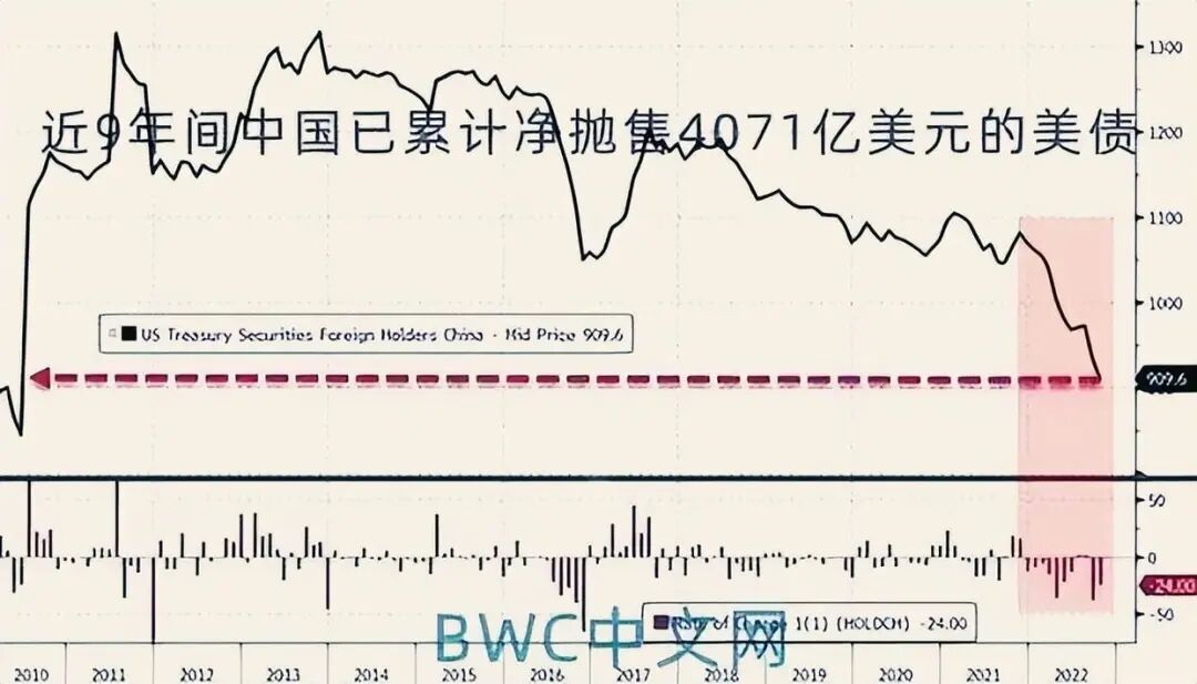 值得一提的是,美国财政部的报告显示,截至2022年10月,中国的美债持仓已经由2013年11月当时持有的高达1.3167万亿美元降至9096亿美元。9年间,中国已经累计净抛售了规模高达4071亿美元的美债,累计大规模净抛售比例约为31%。