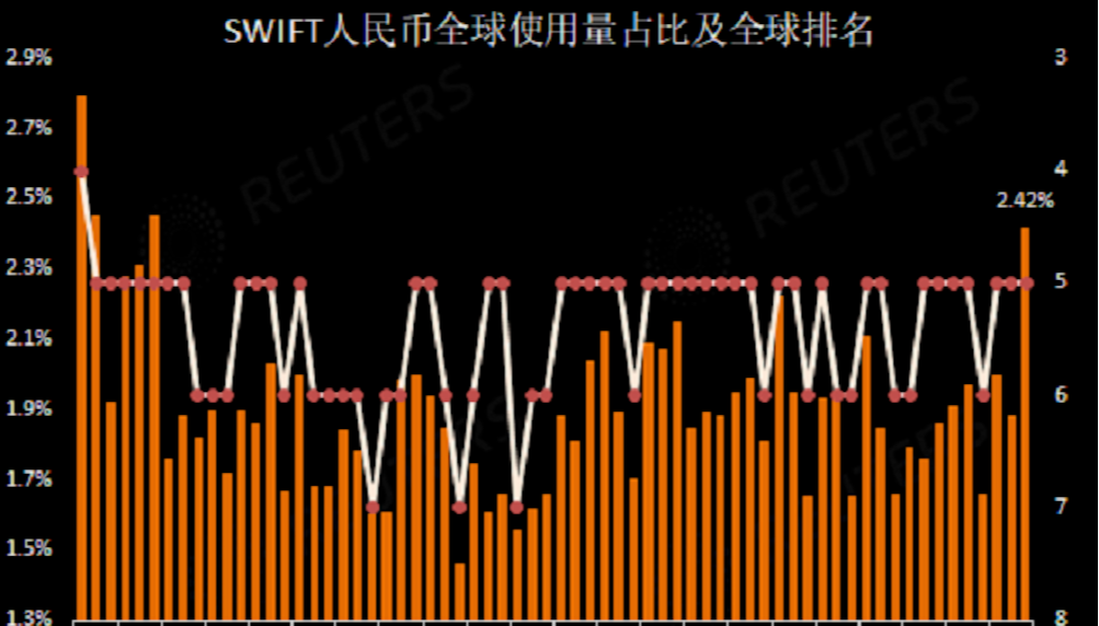 以伊朗石油为例,据伊朗金融论坛报的最新数据,截至去年12月,伊朗外储中的人民币份额已经超过21%,分析显示,自中国用人民币购买伊朗石油首单以来,中国在购买数百万吨的伊朗石油过程中,大多数结算已经是用人民币来进行的。