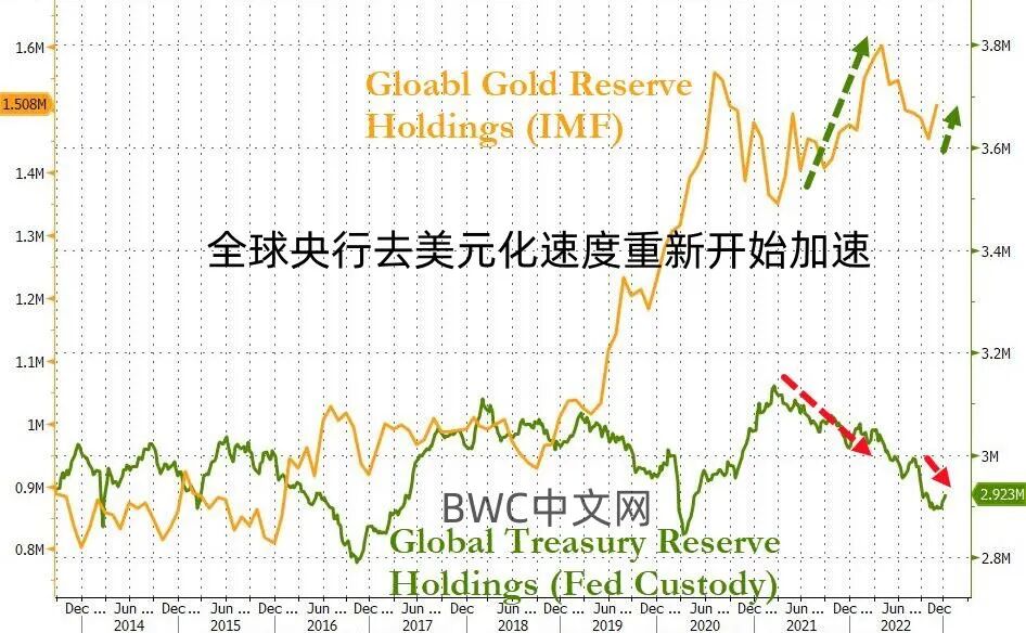 美联储在1月20日公布的报告也表明,截至1月14日当周,外国央行净抛售了143.6亿美元的美债,同时,世界黄金协会在1月18日更新发布的报告中也称,全球央行在抛售美债的同时,也正在大幅度增持实物黄金,创下美元与黄金脱钩那年以来最快的速度纪录。
