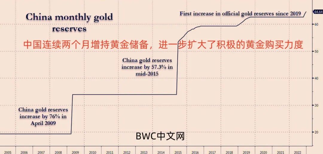 据国家外汇局最新公布的数据显示,中国的黄金储备在沉寂了38个月没有披露增长后,在1月7日,官方机构突然宣布截至2022年12月底,中国在2022年下半年连续两个月增持黄金储备,较去年10月共增长62吨至总量为2010吨,占总外汇储备的3.7%,这也表明,中国也紧跟全球央行增持黄金的步伐,打破沉默发出黄金储备增加的信号,出乎全球市场的意料之外。
