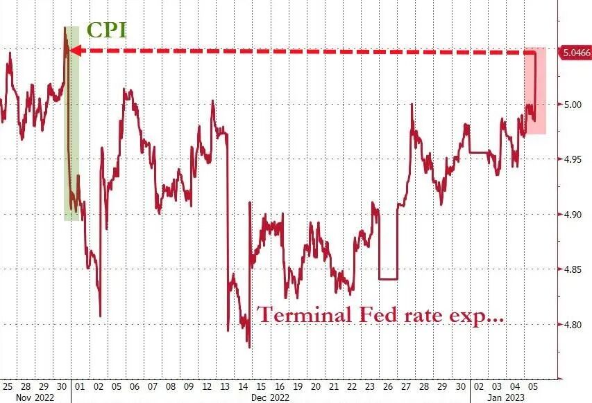 这也意味着,美联储在债务违约和利息成本飙升的压力下可能会在其坚称的紧缩货币政策上正式服软投降,而作为美国最核心的资产,美债的稳定性和信誉度受到质疑也会直接影响美联储在鹰派加息路径上的服软转向态度,同时,美国在1月27日晚间公布的PCE物价指数显示进一步通胀放缓,市场对美联储的加息预期也出现生变,预计美联储将在3月结束本轮加息周期。