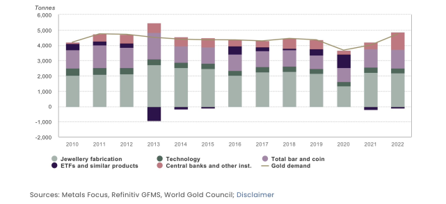 而在市场层面,事情的一个新变化是,俄罗斯海关机构公布的最新数据显示,2022年中国买家从俄购买了6.6吨黄金,比2021年增加了67%。此外,根据瑞士海关公布的最新数据,2022 年,全球最大黄金精炼中心的瑞士对中国的黄金出口创四年新高,达到524吨黄金,这比 2021年报告的354吨大幅增加,也是自 2018 年以来的最高水平。也就是说,目前已知的,2022年仅从俄和瑞士这两个国家就有高达530.6吨黄金运抵中国。