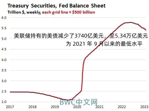 这表明,美联储的量化紧缩开始产生明显的影响。特别是,美联储的最新资产负债表2月2日同时显示,自2022年6月初达到峰值以来,美联储持有的美国国债减少了3740亿美元,至5.34万亿美元,为 2021年9月以来的最低水平。今年1月,美联储持有的美国国债减少了 604 亿美元,这已经高于最初定的每月缩减600亿美元的上限。显然,此时的美联储并没有因为美国债务陷入困境而出手相助,反而在坚持自己既定的减持美国国债的策略,而从美联储抛售美国国债的规模上来看,美国国债的最大做空者也正在浮出水面。