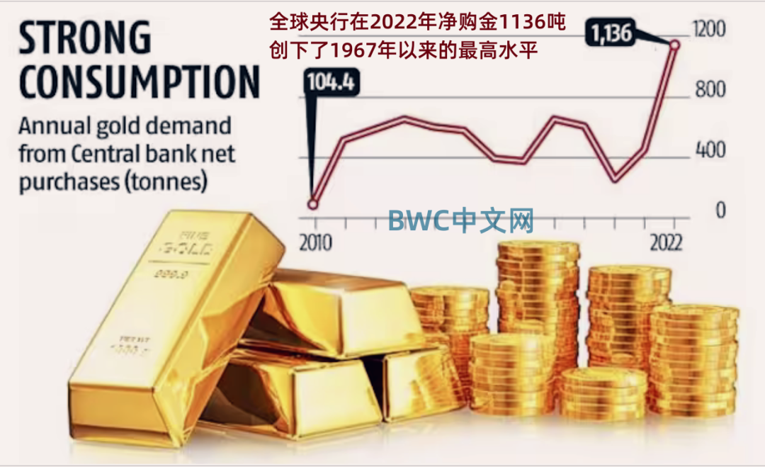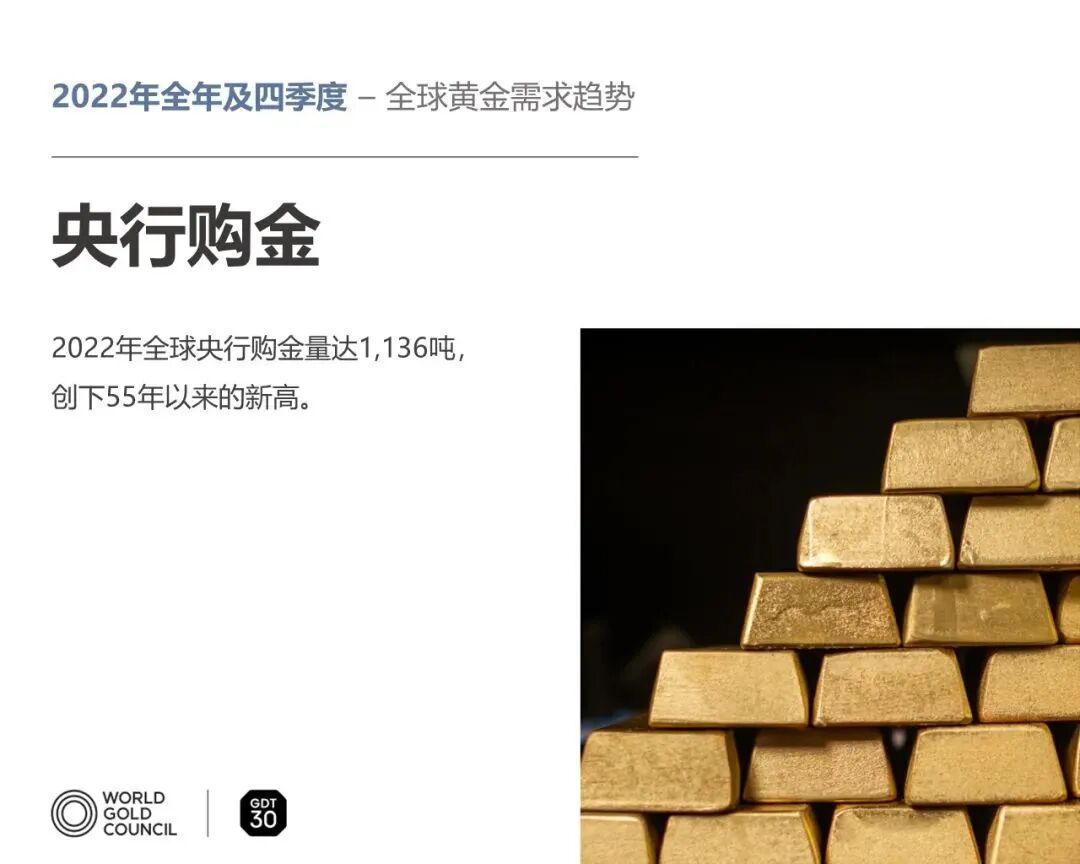 据世界黄金协会在2月5日发布的报告表明,全球央行购金需求飙升和私人黄金投资需求走强刺激去年四季度全球黄金需求创下新高,并推动全球央行在2022年净购买了1136吨黄金,比2021年的两倍还要多,创下了1967年以来的最高水平,更是超过美国脱离金本位那年的购买纪录,超出市场预料之外。
