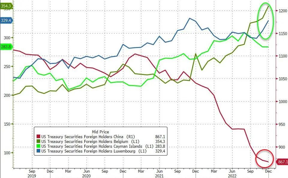 许多分析人士认为,中国是增持黄金储备以减少美元敞口的神秘大买家,鉴于美国财政部在2月16日最新公布的报告表明,去年12月,中国再次减少31亿美债,且为连续四个月减持美债,使得持有美债规模降至8671亿美元至2010年5月以来新低(具体数据细节请参考下图),而自去年5月起,持仓连续八个月低于1万亿美元,且中国持有的美债在截至去年11月的一年中下降了约20%。