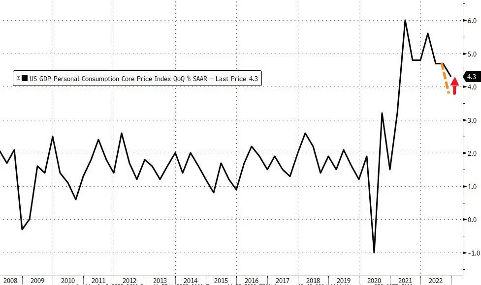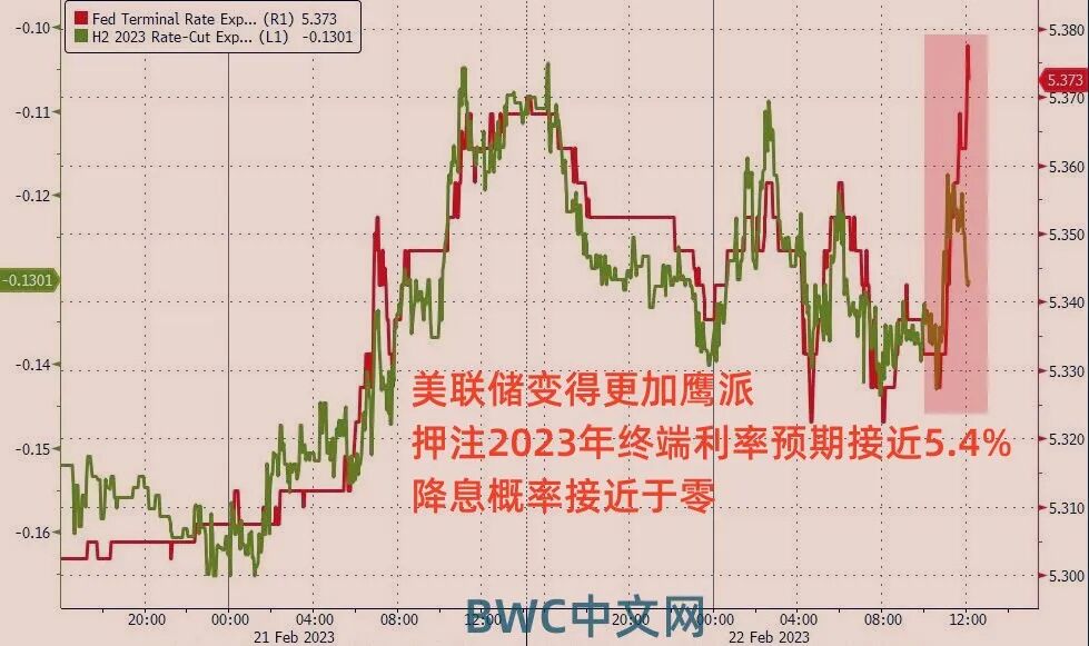 雪上加霜的是,美国劳工部在23日晚间公布的上周初请失业金人数意外下降,继续表明劳动力市场状况持续紧张,同时,美联储最青睐的通胀指标去年四季度核心PCE也超预期升温,被修正上移至4.3%,这两个数据均表明通胀将很难回到美联储的目标区间,更坚定美联储持续加息的决心。