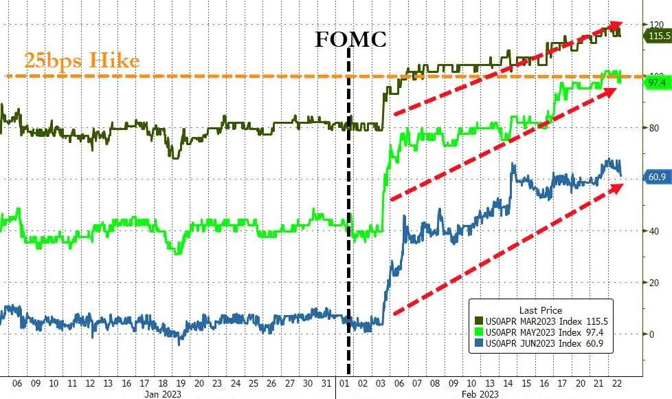 以上这几项最新公布的数据均表明通胀将很难回到美联储的目标区间,投资者担心美联储会加大紧缩力度,可能会在3月份再次祭出加息50个基点,以及5月和6月再分别加息25个基点的激进政策。