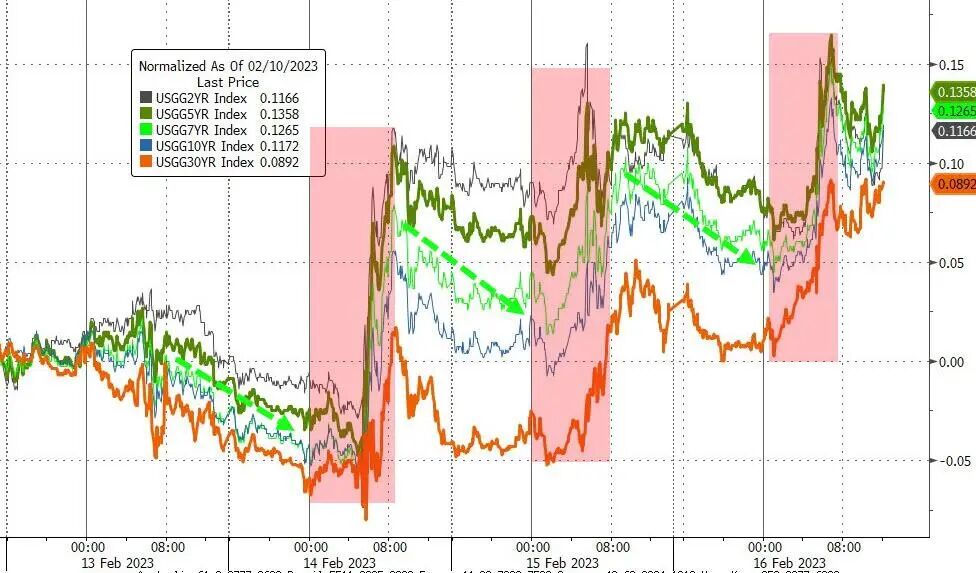 美债市场又刮来了一阵更大的逆风,因最新公布的包括1月份的PCE物价及零售销售等在内的一系列反馈通胀形势的数据强化了投资者对利率将升至5.4%上方更高水平的担忧,使得美国国债市场又遭到了新一轮的抛售潮。