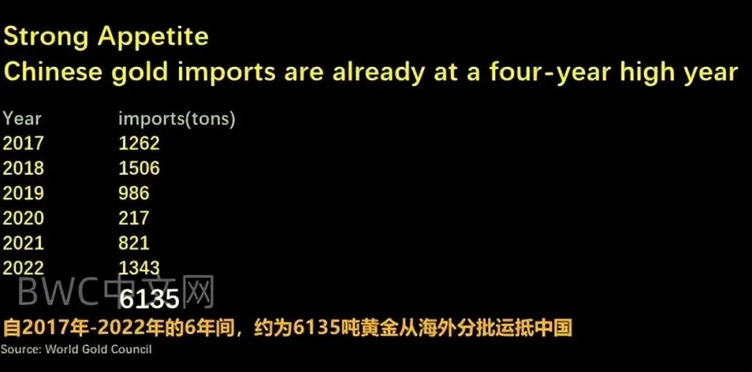 而通过下图,世界黄金协会公布的黄金进出口数据显示,自2017至2022年的6年间,约为6135吨黄金已经运抵中国。那么,中国是否有黄金寄存在美联储呢?