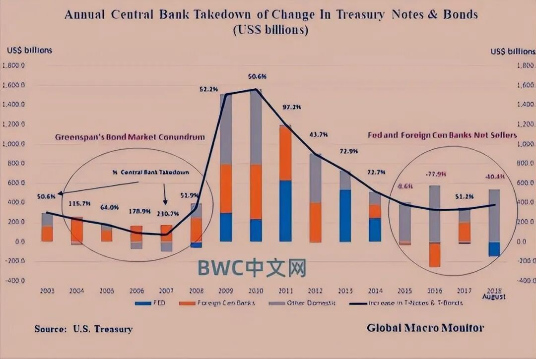 这表明,虽然,美债一直被当作是教科书般的无风险投资的核心标杆,但目前全球央行加速抛售的事实已经表明,被称为全球资产价格之锚的美国国债相对具有恒定信用价值的黄金来说变成一种高风险资产的可能性正在成倍增加。