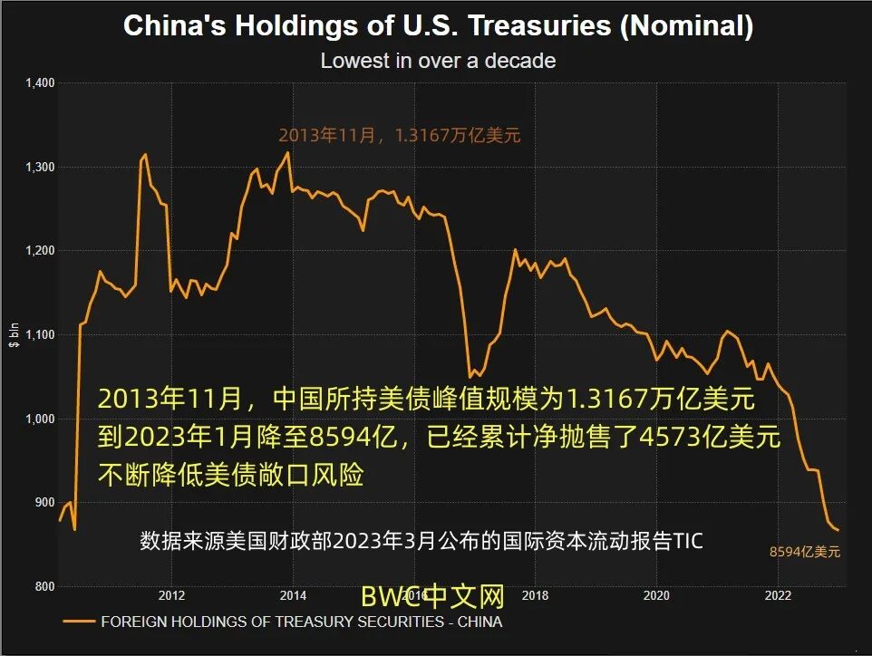 据沙特统计总局在2月23日公布的数据显示,2022年沙特赚取了高达3260亿美元的石油收入,但与此对应的是,2022年至今,沙特持有的美债总量却一直维持在1110亿美元的水平上,且正在呈现下降的趋势。