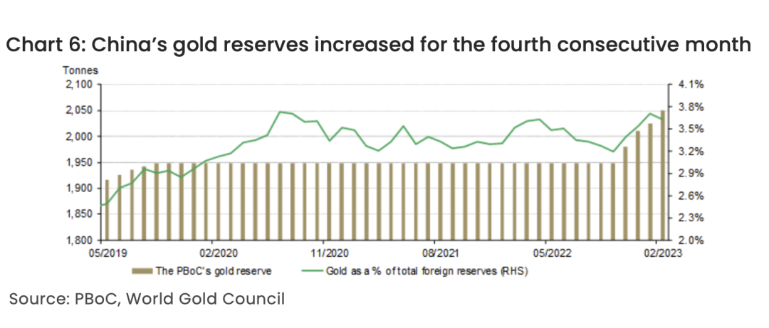 这表明虽然,1月份,美联储发出放慢加息路径的信号以及美债价格大涨会吸引投资者购买美债的市场环境下,中国并没有结束此前连续数月减持美债的状态,保持跟随全球大部分国家在外储领域中继续加速清算美债以置换黄金的趋势。