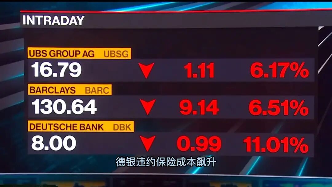 德国资产值最大的银行德意志银行信用违约掉期(CDS)保险成本飙升,市场对欧美银行业稳定的担忧重燃,欧美股市盘初由银行股带领全线下挫。