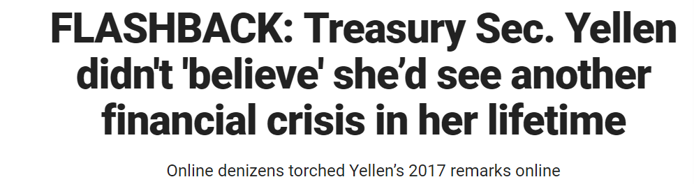 这似乎也是作为美联储前主席的美国财长耶伦在应对美国银行业风暴问题上进退两难的另一层原因。更加不可思议的是,耶伦早在2017年担任美联储主席时,曾明确表示过”在她的有生之年,不会再发生金融危机“,显然,今天美国经济深陷的银行业危机正在打脸耶伦的上述言论。