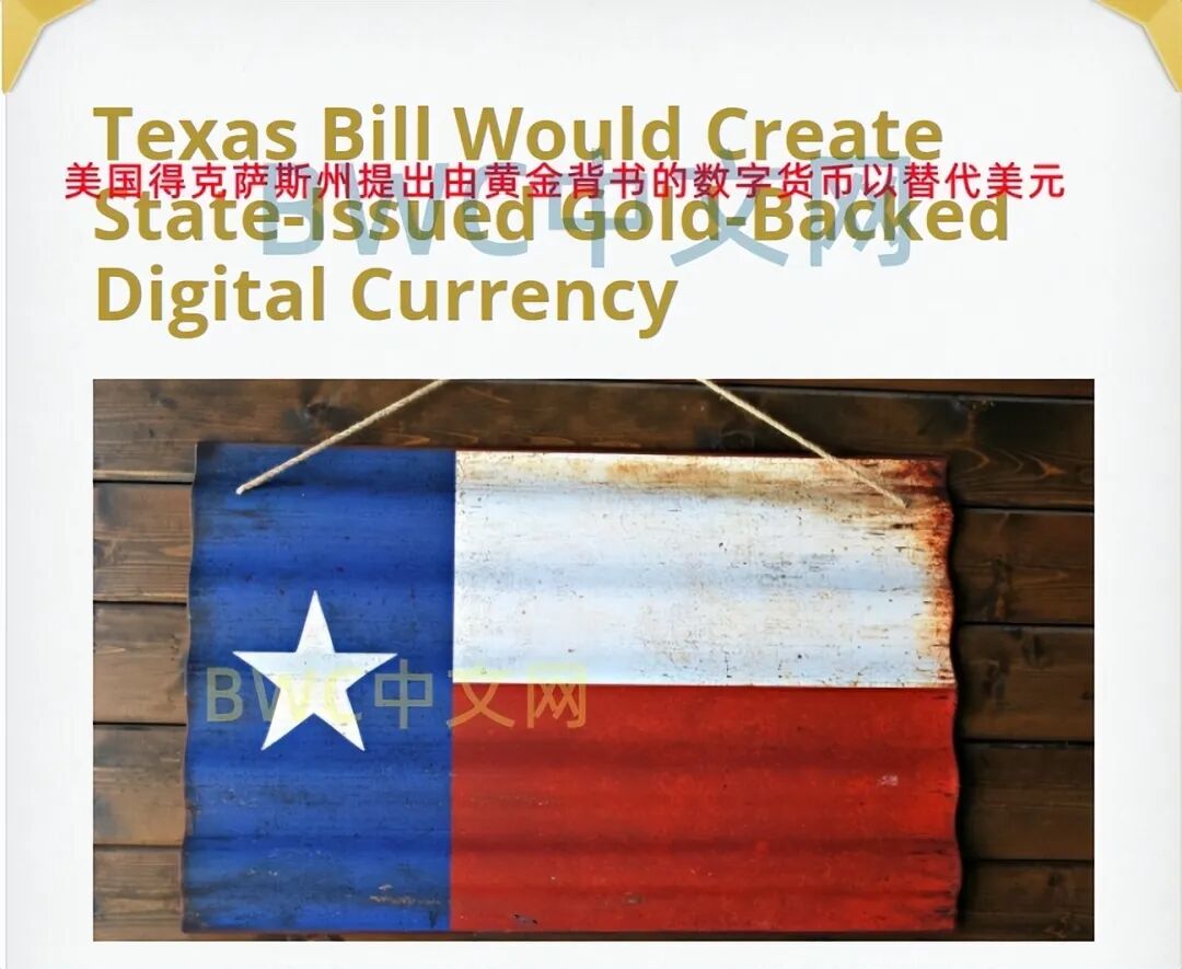 事情的最新进展是,4月9日有消息表明,美国得克萨斯州提出名为 SB2334 和HB4903的两项法案,这两项法案将创建一种由州发行,黄金支持并可完全兑换成美元现金或黄金的数字货币。进而日常交易中可以使用这种以黄金为后盾的数字货币。