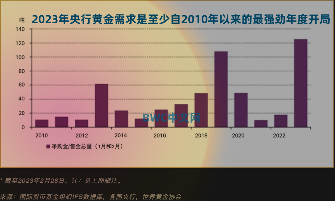 根据美国金融网站零对冲在4月7日援引世界黄金协会编制的最新数据显示,今年前两个月,全球央行的黄金净购买量达到125吨,这也是2010年以来最强劲开局的一年,且是全球央行连续第11个月净购买黄金,且继续保持全球央行在去年购买了创55年以来最高纪录的1136吨黄金后的购买浪潮。