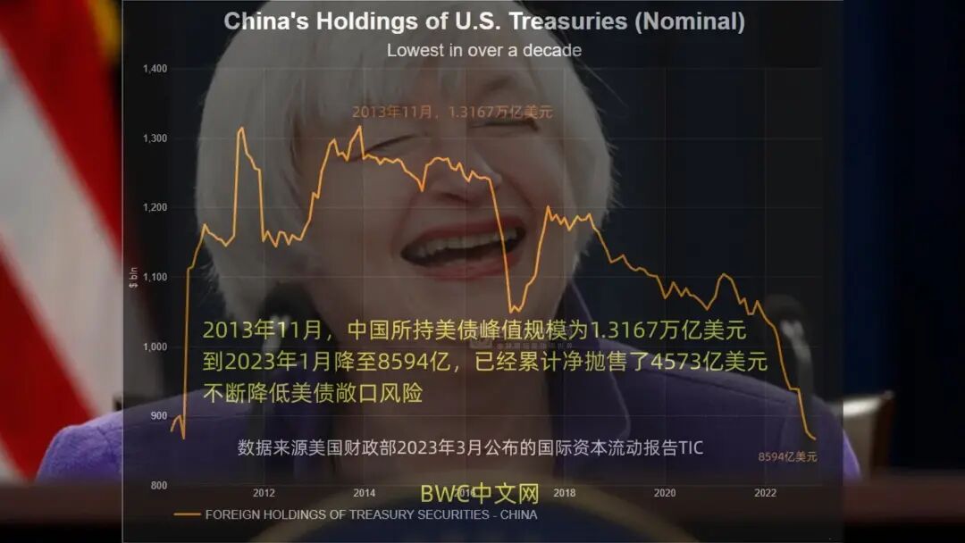 据美国财政部最新公布的数据显示,中国所持有的美债规模已经加速降到13年来的新低至8594亿,且保持了连续第六个月抛售的状态,而从更长远的时间范围来看,和2013年11月时所创下的1.3167万亿的持仓峰值相比,中国更是净抛售了4573亿的美债,累计净抛售比例近35%,这其中,仅过去的24个月内中国就加速抛售约占23%仓位的美债,这和中国自2022年以来将黄金购买水平推至近五年以来的新高和自去年11月以来,连续五个月报告共增持了120吨黄金储备的数据形成了鲜明的对照。