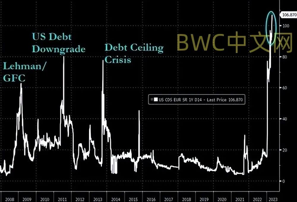 与此同时,截至4月22日,市场对美国主权风险违约的押注也已飙升至2008年美国金融危机以来的历史新高。