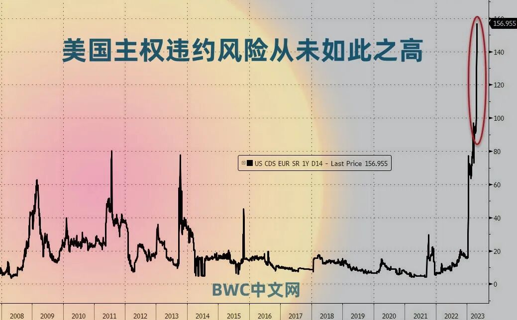 5月13日,随着美国越来越接近可能出现债务违约的X日期(6月初),美国政府债务违约保险成本在12日升至新高。