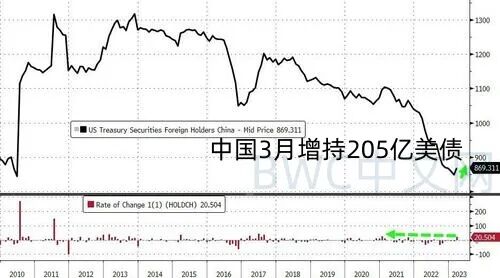 尽管根据美国财政部本月的报告显示(美债数据延后两个月惯例),中国3月增持了205亿美元的美国国债,依然还是美债的第二大持有国,但目前持有的8693亿美元美债依然为历史低点,并且未来不排除某个时候突然大手笔抛售美国国债并大幅置换成黄金的可能。