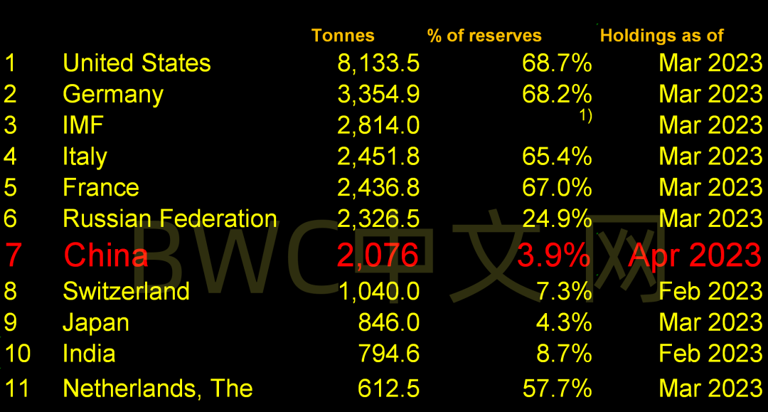 而自去年11月至今年4月,中国已经连续6个月,共增加128吨黄金储备,使黄金储备达到2076吨的历史高位,约为外汇储备的3.9%。不过,这相比于德国,法国,意大利等欧洲国家黄金储备占比约为65%甚至更高相比,存在更大增持黄金储备的空间。