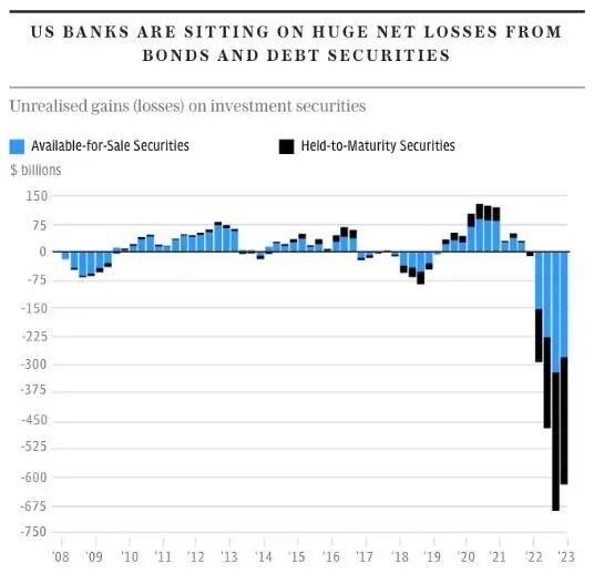 胡佛研究所的另一份最新报告也得出相似的结论,报告称,目前有超过2,315家美国银行的资产价值低于负债,他们贷款组合的市值比账面价值低2万亿美元。因此,最近倒闭的三家美国银行显然只是个开始,更大的更多的美国银行将可能会遵循同样的倒闭路线。