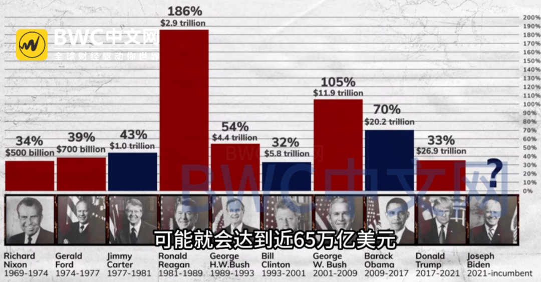 自上世纪80年代以来,平均每8年,美国联邦的债务总额就要翻一番,假设延续这一走势,则意味着,到本世纪30年代初时,美国的国家债务总额仅公开层面的数字可能就会达到近65万亿美元。