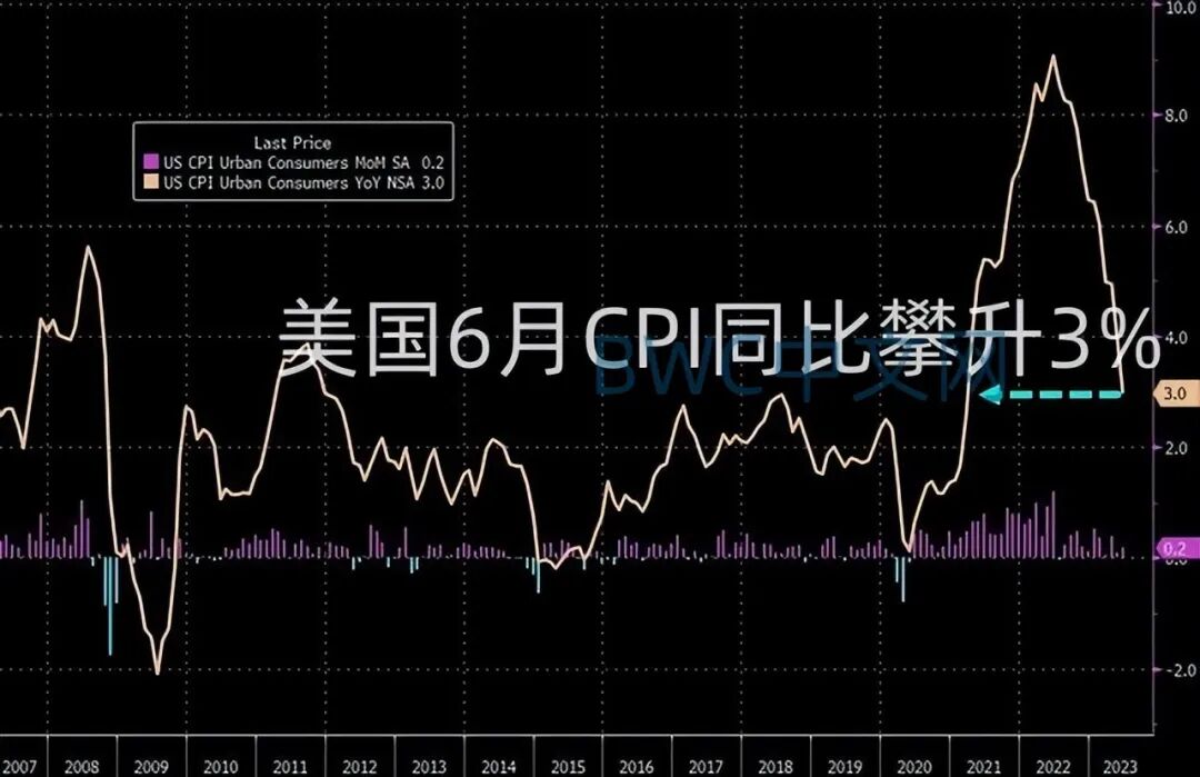尽管经过10次加息,联邦基准利率达到5%-5.25%的40年高位后,美国劳工部7月13日公布,美国6月份消费者价格指数(CPI)同比攀升3%,涨幅远低于9.1%的峰值,也低于5月的4%。重回2021年3月的水平,连续第12个月下降,但是目前依然没能达到美联储2%的通胀目标。对此,美联储理事沃勒(Christopher Waller)7月14日表示,美联储今年需要再加息两次,才能将通胀降至目标水平。