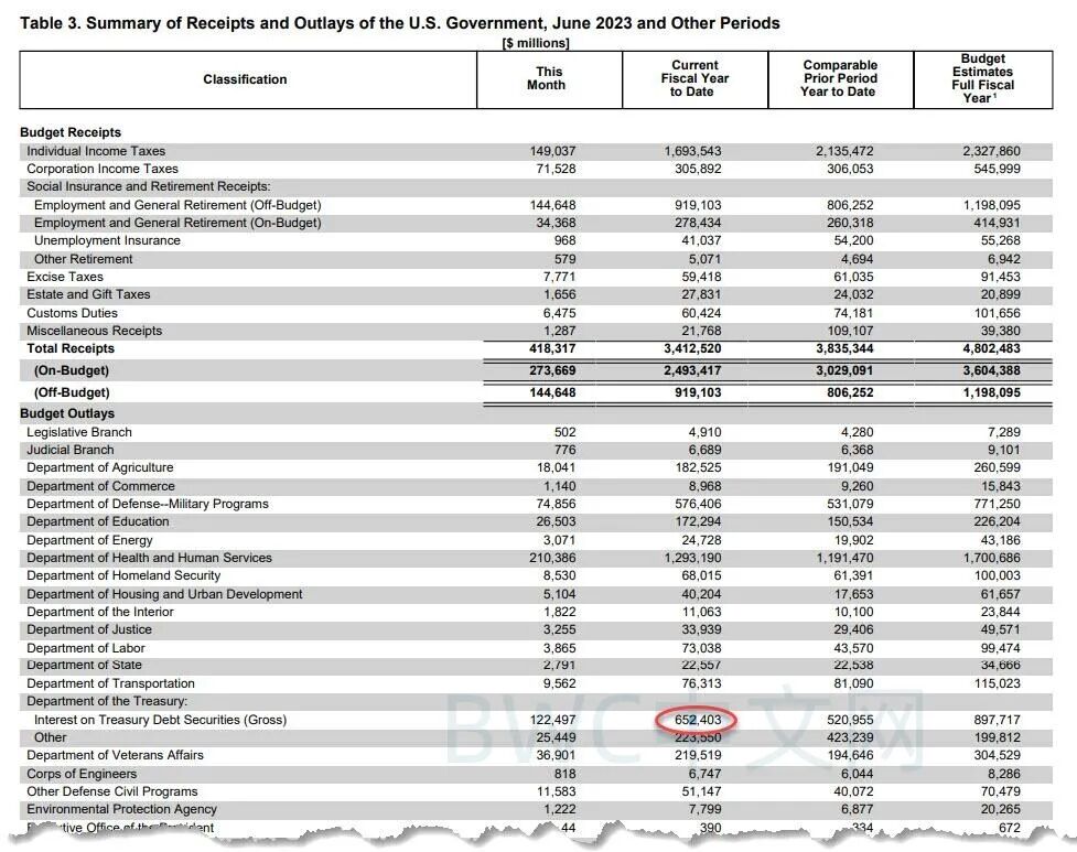 根据美国财政部的数据,截至 6 月底未偿债务总额的加权平均利率为2.76 %,这是自 2012 年 1 月以来从未超过的水平。该部门的数据显示,这一数字高于一年前的 1.8%,如果美联储确实维持较高利率更长时间,那么债务综合利率将在一年内超过 4%。