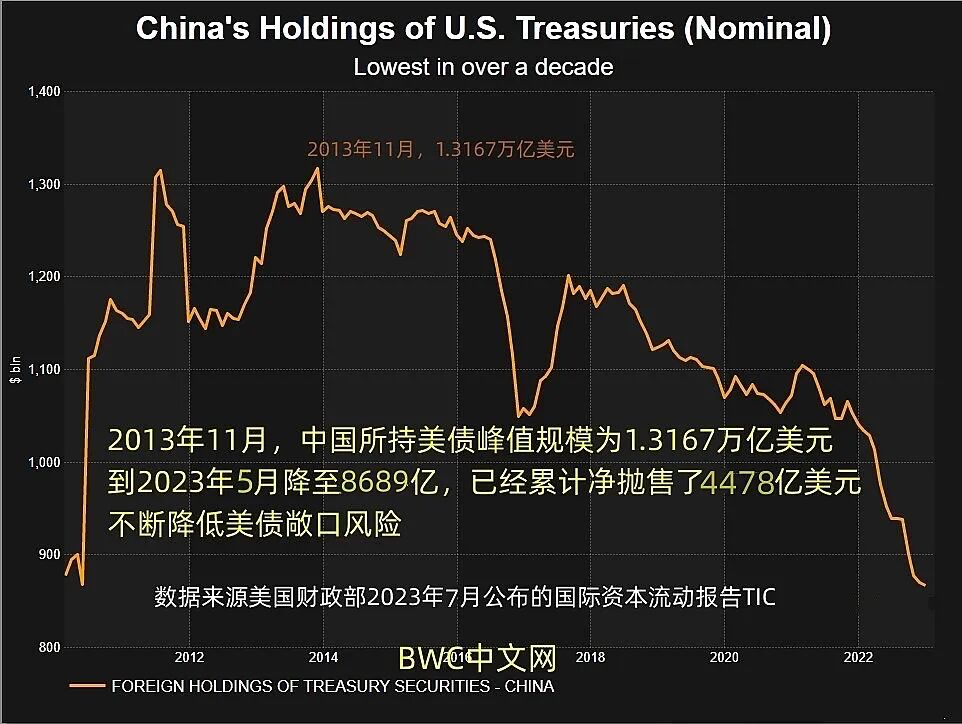 据美国财政部最新公布的数据显示,中国所持有的美国国债规模已经加速降到13年来的新低至8689亿美元,且持有量更是第十二个月低于象征性的1万亿美元,而在过去十年中,中国已经清算了约4500亿美元的美债,累计净抛售额接近35%,且从去年开始清算美债的速度明显加快,仅去年就清仓了占23%比例的美债。
