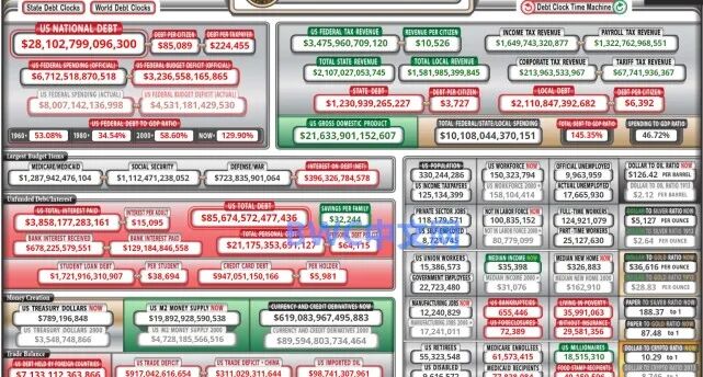 目前,美国国债实时钟上显示的债务总额已超过28万亿美元大关,在过去的45周内,美国已向市场投放达超23万亿美元的流动性和经济刺激方案来弥补系统的脆弱性,根据美联储最新编制的报告显示,美国金融体系的债务已经达到81万亿美元。