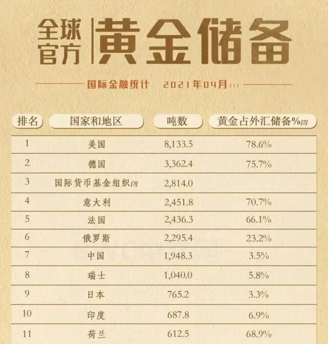 值得一提的是,对于媒体稍早前报道的,中国可能有600吨黄金存在美联储。而按世界黄金协会的数据显示,中国目前拥有的黄金储备为1948.3吨,仅占到外汇储备总份额的约3.5%。相对于德国黄金储备在其外汇储备占据的75.7%的份额非常小,而可能寄存的600吨黄金在外汇储备总份额中占据的比例就更小,约为1.08%。