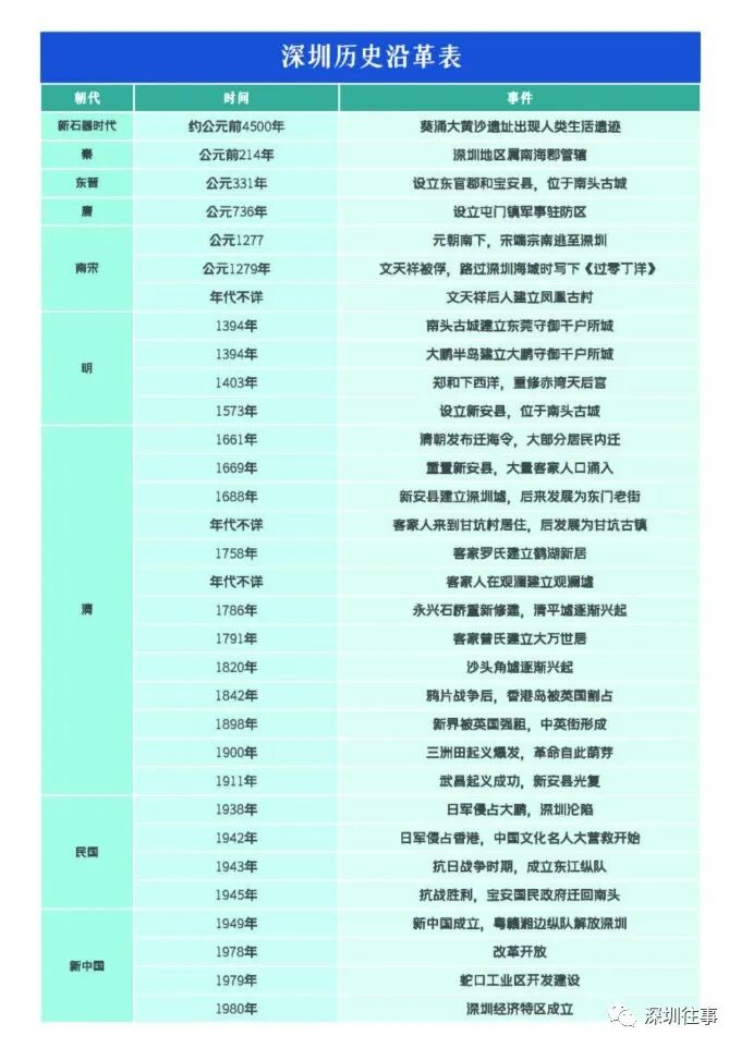 多数人对于深圳改革开放前的印象一定还停留在南海边的小渔村,似乎这座城市的历史,只被浓缩在改革开放后的这40多年中。这种认知的源头我们已无从考证,但这种片面的概括对于一个在新石器时代就有人类居住的城市来说,是不公平的。 历史是一座城市的底蕴和基调,当你探寻它的过去时,其实是在和它的未来对话。通过认知过去,我们才能够更好地理解未来。接下来让我们穿越时空,走进深圳的历史,去探寻这座城市的过去。深圳往事深圳自古以来就是中国南部的海防要塞,海上丝绸之路也是通过深圳这个重要节点走向世界,同时在中国历史上的重大事件中,深圳也扮演着不可或缺的角色。拨开历史的迷雾,我们发现这些事件的背后,都和深圳有着千丝万缕的联系。 从古至今的深圳