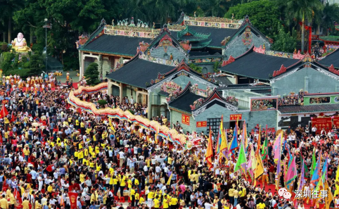 下沙祭祖:福田区下沙村黄氏祭祖(一般被简称为下沙祭祖),是国家级非物质文化遗产,始于南宋,已经传承800年之久。不管是本地还是身处海外的黄氏后人,都要在祭祖这天赶回下沙村,和族人一起祭拜先祖,这天也成为家人团聚的日子。下沙祭祖分春秋两季进行,清明节前的春祭比较简单,重阳节后的秋祭则非常隆重。下沙祭祖不是简单的祭祀活动,它有从古延续至今的固定流程,祭祀之后还要举行盛大的活动。舞龙、舞狮、粤剧表演、大盆菜宴等成为下沙祭祖的独特风俗。2002年祭祀仪式后的大盆菜宴参与人数高达6万人,是一次空前的文化盛宴。