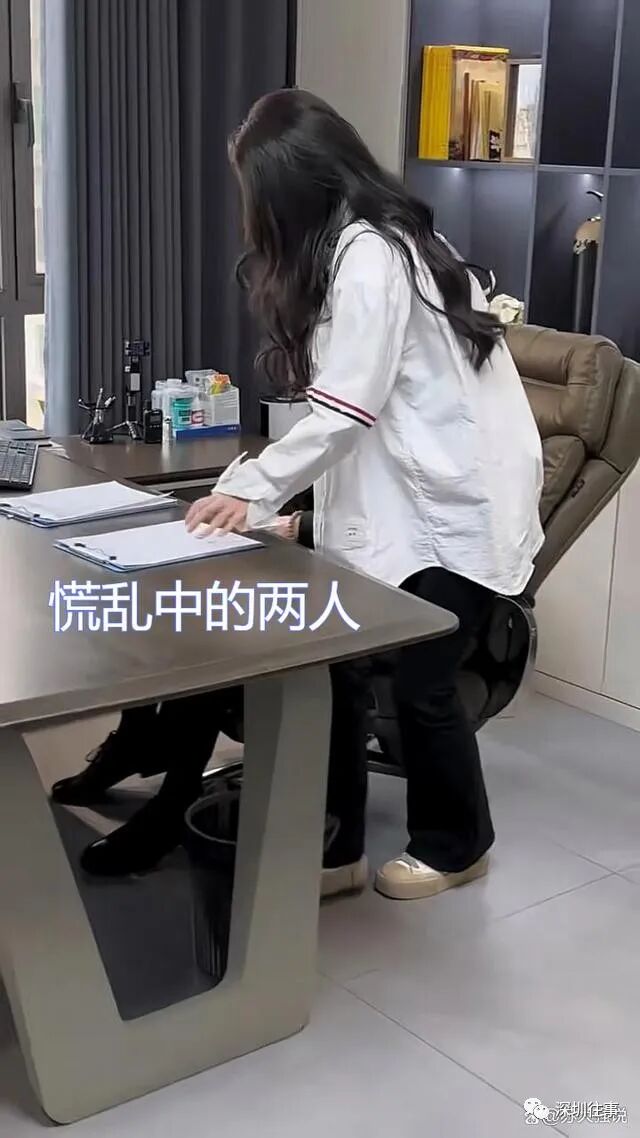 程某与女助理在办公室内相互依偎,并亲吻对方,就在这时,小北突然出现在办公室门口。