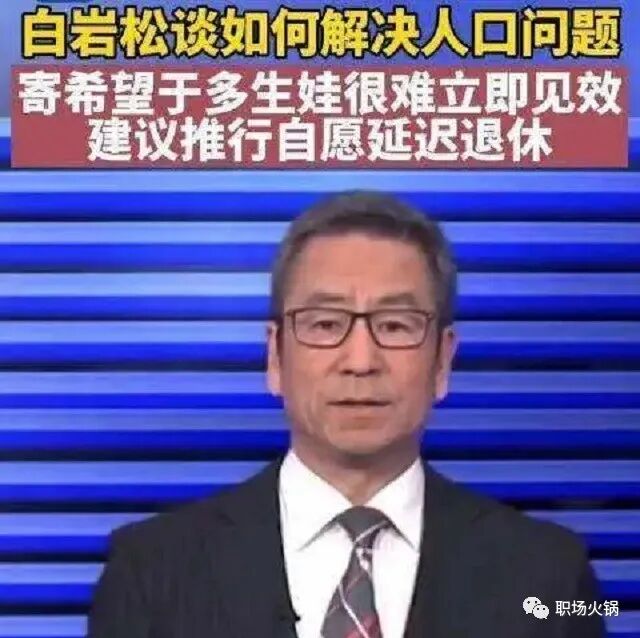 白岩松在2022年的全国两会上,在提案中大胆建言:① 延迟退休要建立在自愿的基础上;② 要建立一个老年人就业的环境。延迟退休之后,最难的让65岁老人从事什么职业呢?所以,务必要提前建立适合老年人就业的市场环境和容纳体系,延迟退休不能挤占青壮年的就业市场。