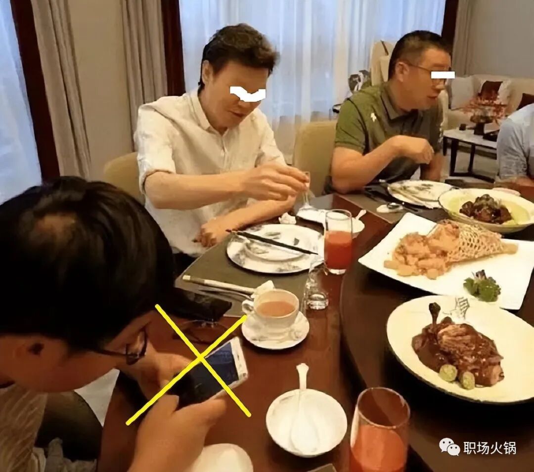 有些人尤其是年轻人,参加重要饭局,由于自己是一位小角色,百无聊赖,就坐在饭桌上玩手机。这是一种“黑化人品”的饭局大忌行为。全程玩手机,要么是你不懂事,要么是你不尊重所有人。这种人一般没有出息。